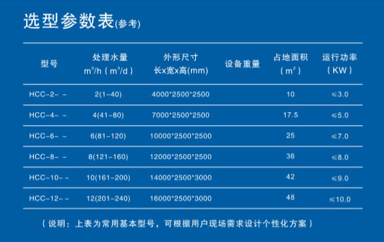 用户需求为日处理生活污水118m3,处理后达到回用标准,安装方式为地埋安,选型如下: HCC-6-2-2